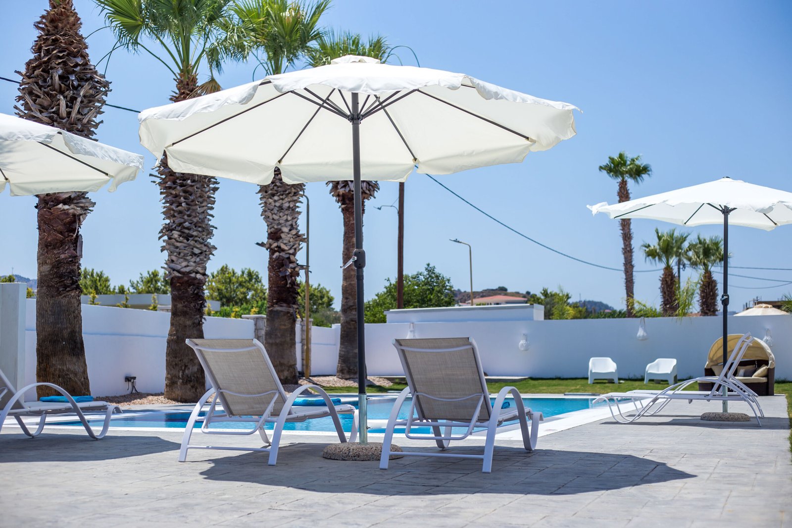 - Amenities: Air conditioner, Balcony, Bathroom, Beach towels, Beachfront, Dining area, Double bed, Flat-screen TV, Free parking, Free private parking, Free WiFi, Fresh water pool, Hairdryer, Laundry service (at extra charge), Non-smoking rooms, Outdoor pool, Satellite TV, Shampoo & Soap, Shower, Slippers, Sun loungers & Umbrellas, Terrace, Wardrobe
