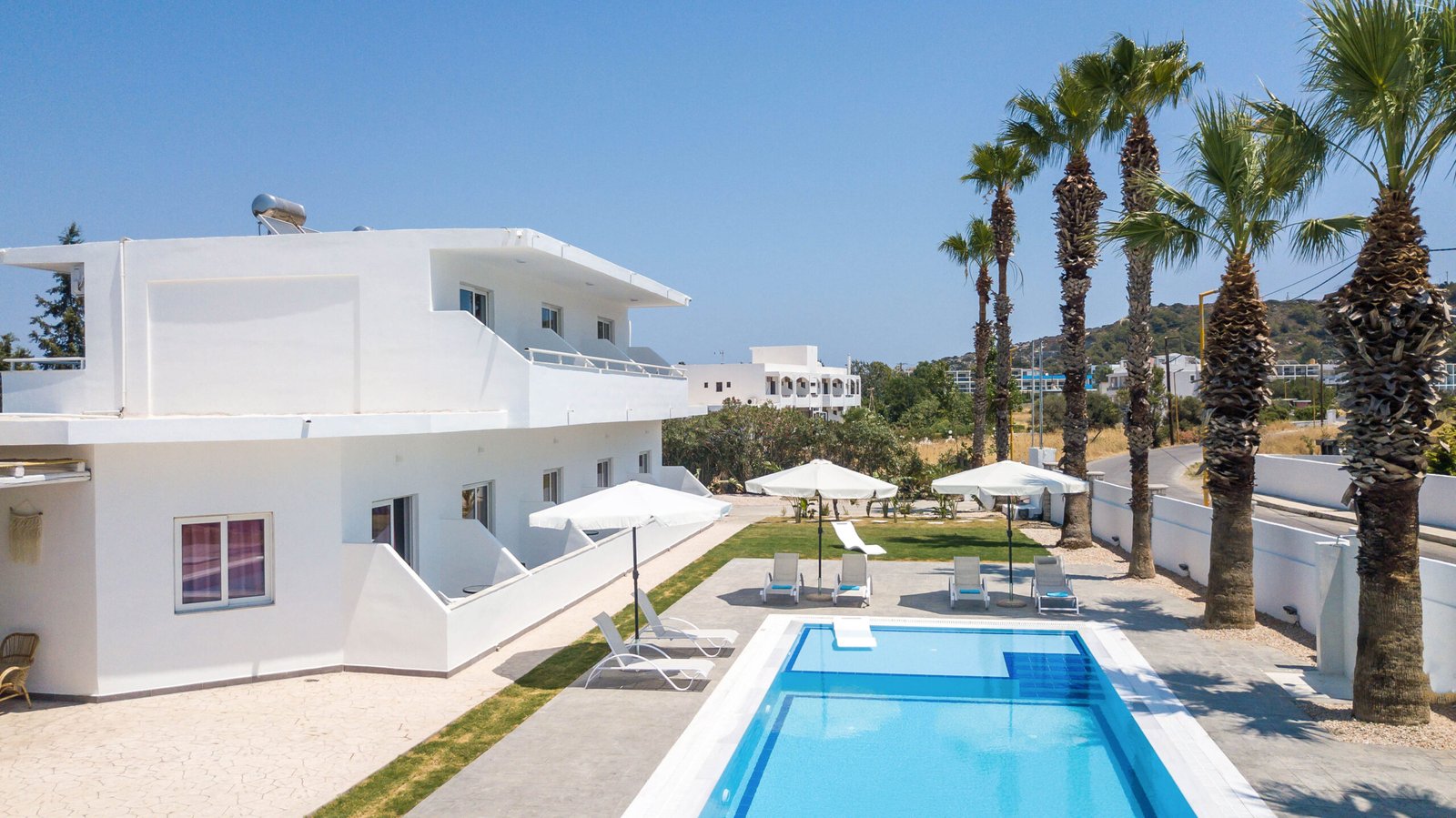 - Amenities: Air conditioner, Balcony, Bathroom, Beach towels, Beachfront, Dining area, Double bed, Flat-screen TV, Free parking, Free private parking, Free WiFi, Fresh water pool, Hairdryer, Laundry service (at extra charge), Non-smoking rooms, Outdoor pool, Satellite TV, Shampoo & Soap, Shower, Slippers, Sun loungers & Umbrellas, Terrace, Wardrobe