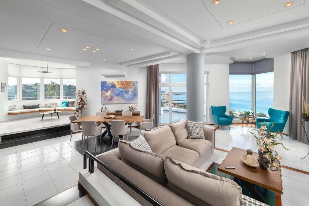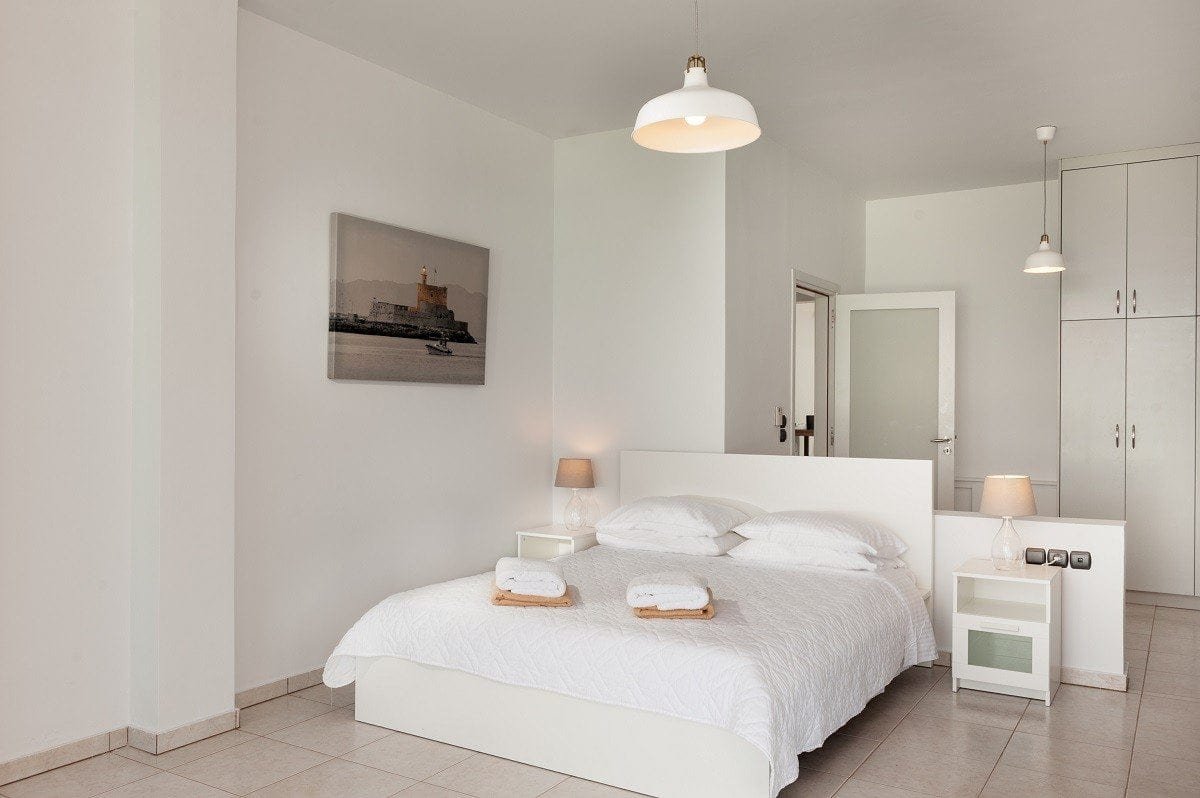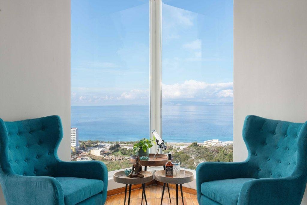 Die Monthe Smith Villa, ein luxuriöser Rückzugsort mit 5 Schlafzimmern auf einer Klippe mit Blick auf Rhodos-Stadt und die atemberaubende Ägäis. Diese wunderschön renovierte Maisonette bietet moderne Annehmlichkeiten und einen atemberaubenden Panoramablick. Die Villa liegt ideal, nur 3 km vom pulsierenden Stadtzentrum und der historischen Altstadt entfernt und ist der perfekte Ausgangspunkt, um die reiche Kultur und die unberührten Strände der Insel zu erkunden. Entspannen Sie auf der geräumigen Außenterrasse mit Infinity-Pool, bequemen Liegestühlen und Speisen im Freien. Erleben Sie den ultimativen Kurzurlaub mit Stil und Komfort in der Monthe Smith Villa.