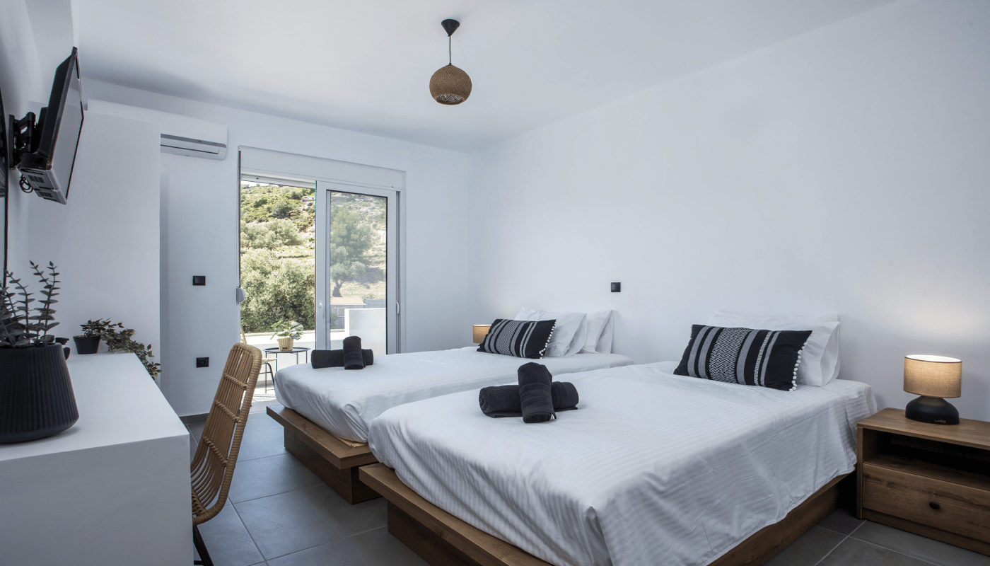 Villa Eremia, was im Griechischen “Gelassenheit” bedeutet, ist ein ruhiger Rückzugsort für Ihren Urlaub, der einen malerischen Blick auf Olivenhaine und das Ägäische Meer bietet, während die türkische Küste in der Ferne sichtbar ist. Diese großzügige Villa bietet Platz für bis zu 10 Gäste in fünf Schlafzimmern und drei Badezimmern und garantiert einen friedlichen sowie komfortablen Aufenthalt.